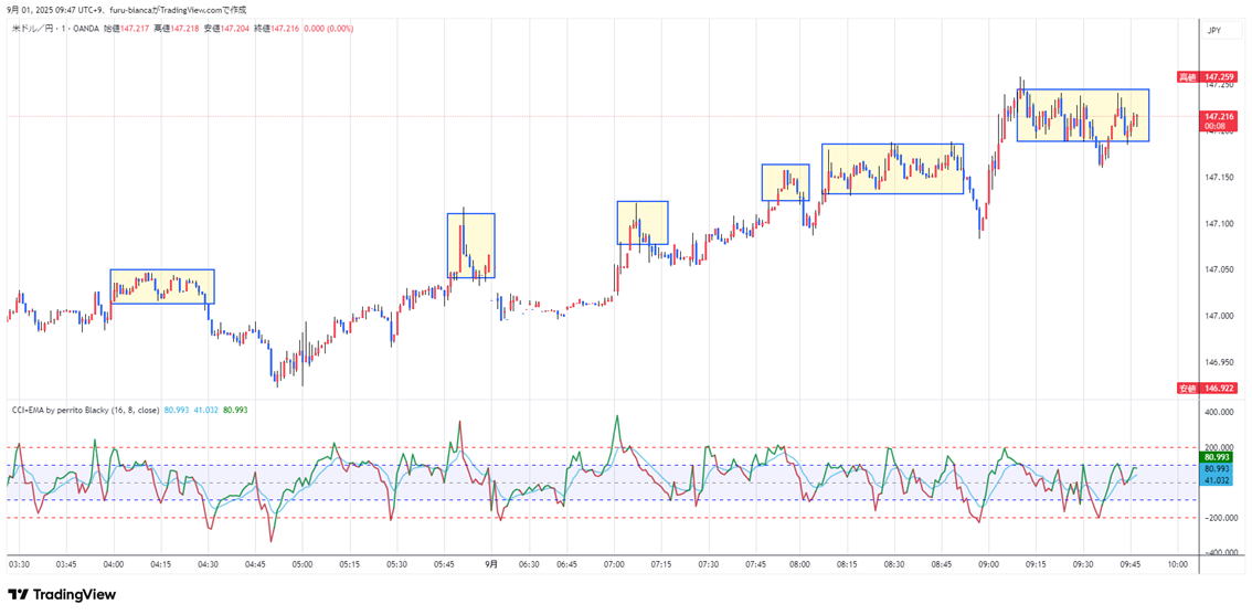 レンジ考察 | 1分ロウソクの中でも階段が出て安定していれば、15秒エントリーで勝てます でも大きいレンジならいいですが高低差が少ないレンジははばがないので勝てません。 レンジで勝てるのはコアタイムだけ |
