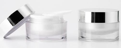 OEM3000 印刷別途加算製品番号(フタxボディ:番号)銀x半透明:830 030 671(30g) 830 050 672(50g) 塗装・印刷・プラの色は相談 LA アクリル シルバーキャップ クリームジャー30g 50g |